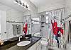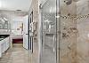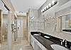 Primary bathroom, w/ walk-in shower, dual sinks, pool access