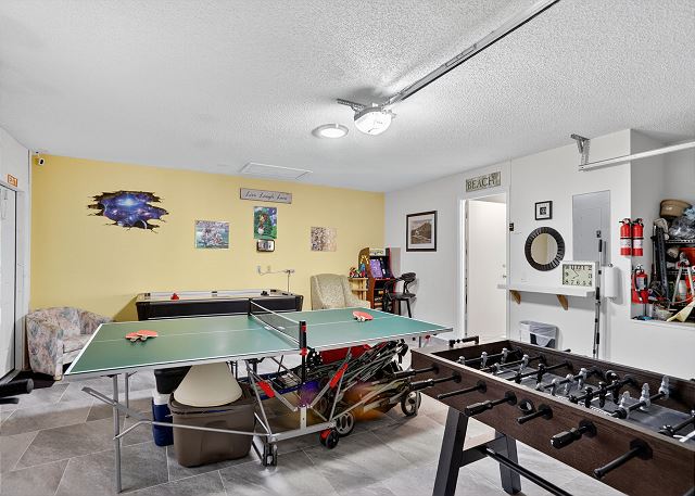 Game room (garage), w/ air hockey, table tennis, foosball, etc.