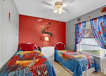 Reviewed on 2020-12-14 by Heather O. , Hamilton, GA UnknownWe enjoyed our time at this vacation home. It was very clean and the pool was beautiful even though it was too cold on our trip to enjoy would be great during the summer. We loved the themed bedrooms for the kids Spider-Man and Princess. Great location we were on Disney property in 10 minutes. Only complaints would be that it is not the most kid friendly, lots of glass furniture and lovely nicknacks we had to watch out for around young children. If your kids are older probably not an issue. Also the pillows are prety bad. would have given a perfect score if they were upgraded. Overall great stay